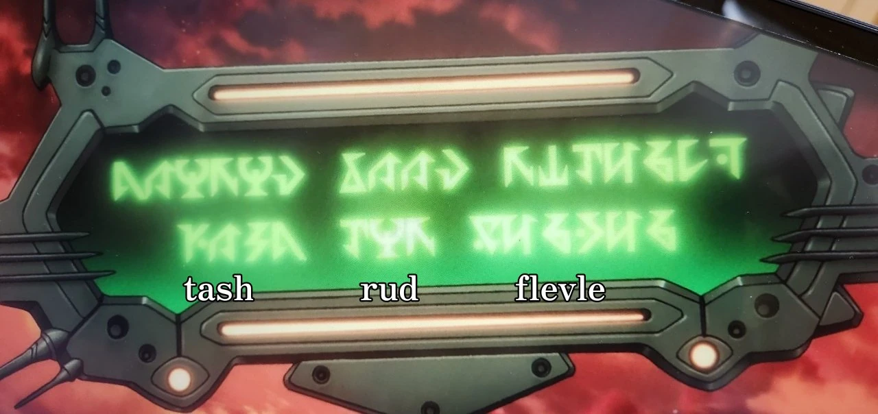 Garmillas descends from the Pan-Archelias protolanguage and belongs to the Garmillatic family of the Macro-Magellanic family of languages.[3] It shares considerable similarities with the Iscandar language, with their alphabet and many words being almost identical, and it's assumed that the gap between the two can be considered a regional difference.[1] Iscandar is even sometimes referred to as "Holy Garmillas". [3]