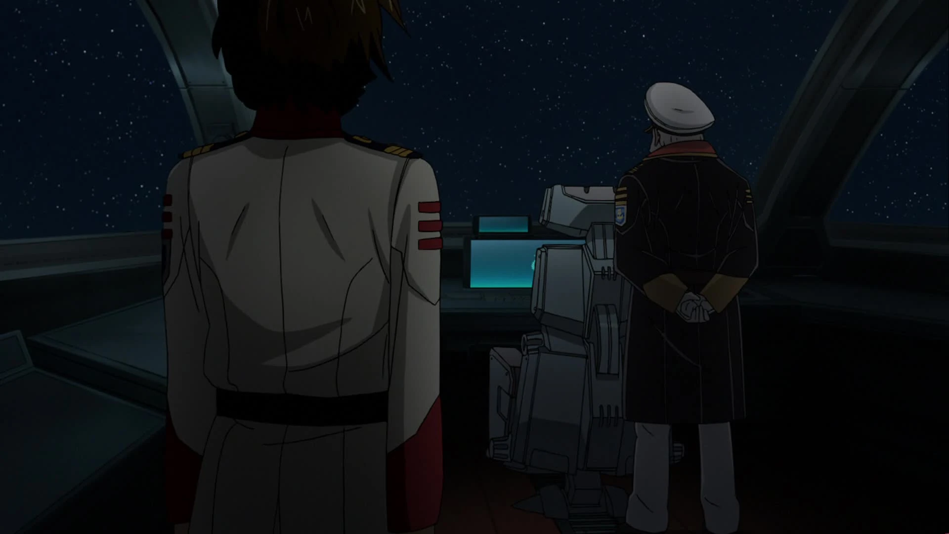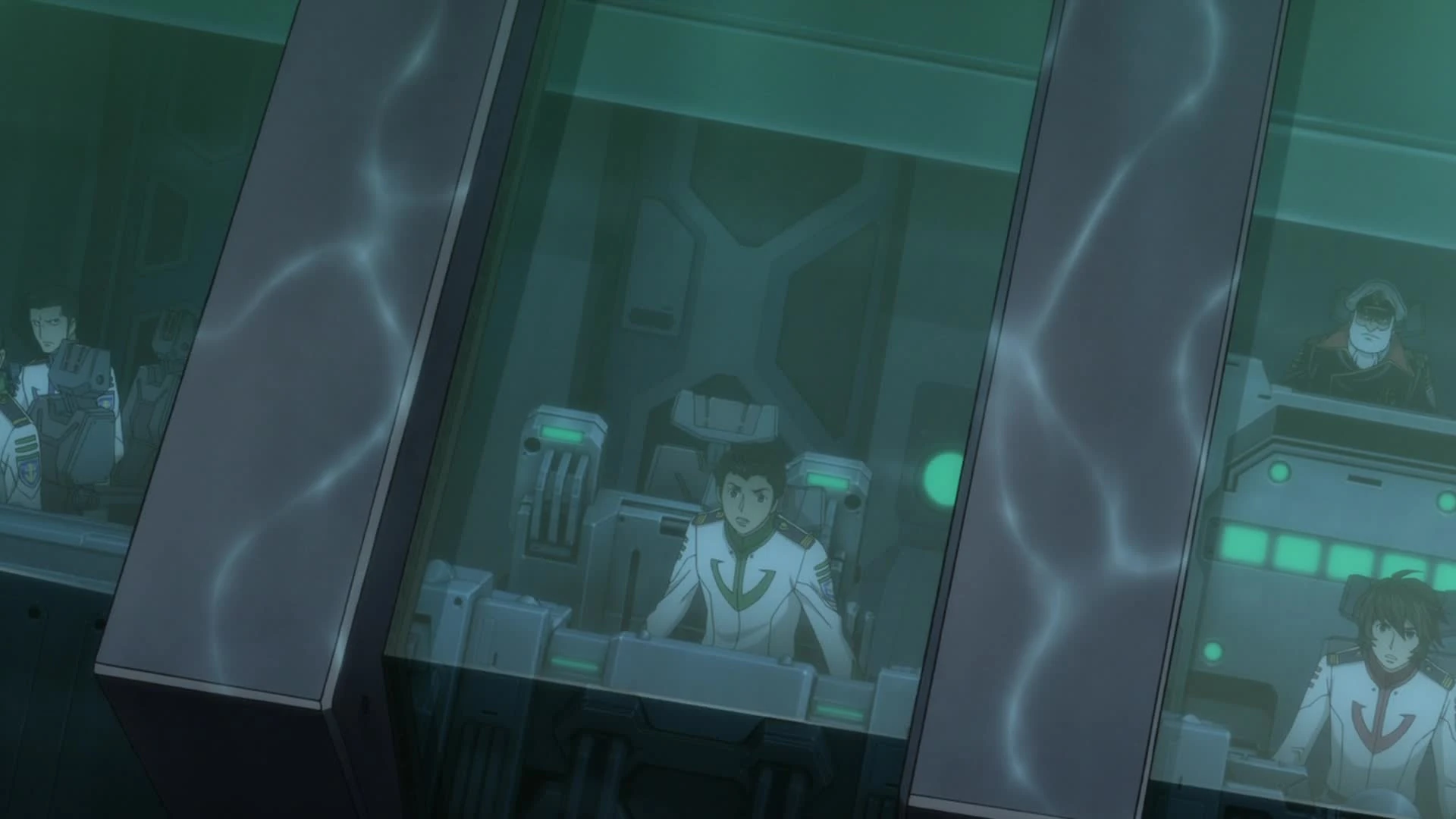 Okita thinks about the wave motion gun's power as he watches the damage dealt to Jupiter